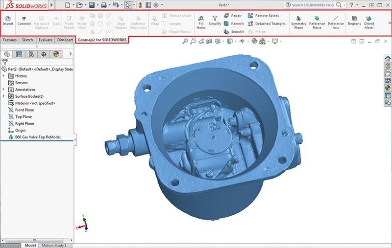 ApplicationsThe Geomagic for SOLIDWORKS can be used to capture the complex geometry of physical objects accurately that would be difficult to measure in traditional ways. Import data or scan directly in SOLIDWORKS and extract CAD sketches, surfaces, and solids. Proceed with more projects in less time. The reverse engineering plug-in is perfect for: