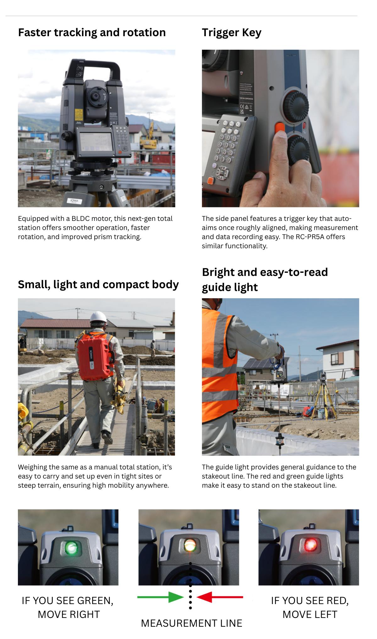 Built for job site mobility, the flagship iX series Brushless Direct Control robotic total station enables accurate and productive workflows for highly demanding survey and construction applications.